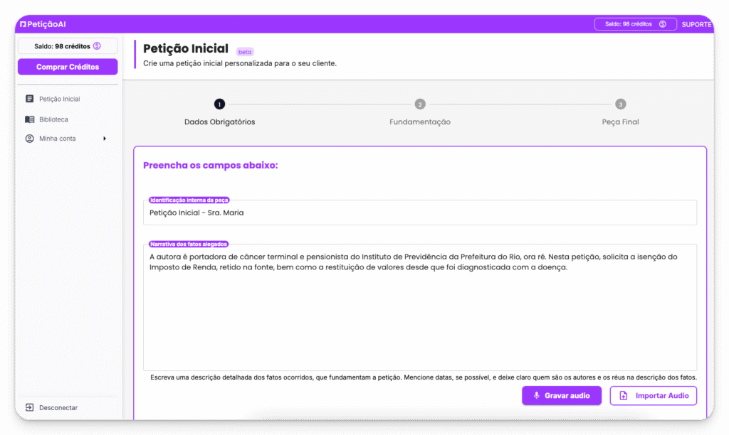 Fale conosco pelo e-mail suporte@peticao.ai